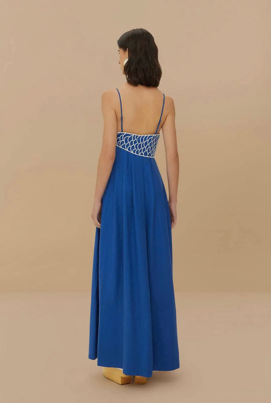 blue koi fish maxi dress